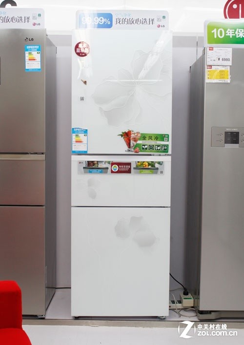 这款LG GR-D29NFZB冰箱全无霜冰箱采用三开门设计,白色外观外加第五代盛唐花纹设计,使这款冰箱看起来既经典又大气,这款冰箱的长宽高分别为629mm、650mm、1855mm,这种规格比较符合一般家庭为冰箱留下来的空间,1855mm的高度一般人使用起来也没有什么障碍。