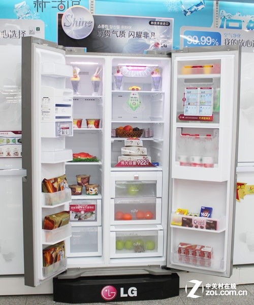 这款LG GR-M267QGL冰箱外观非常出色,采用钢化玻璃面板,在面板上还镶嵌有盛唐花纹,整体上看起来典雅、浪漫,无边框一体式的门板设计也使这款冰箱整体感十足。门把手隐藏在门体上,外观看起来更光滑。这款冰箱采用隐藏式显示屏设计,触摸操控,非常方便。这款冰箱722L的超大容积,多口之家使用也不用发愁。另外,这款冰箱是国家1级能耗产品,每24小时耗电1.28度,节能效果非常不错。因为这款冰箱是韩国原装进口,所以价格较贵,为28800元。