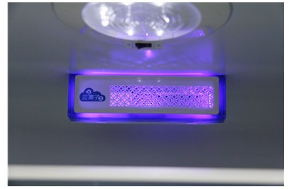 这是康佳云离子专利科技装置,工作时发出蓝色的光。这个装置很特殊,是有效降解农药的保障。