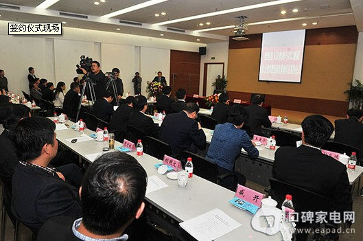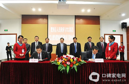 肥西县县长李海鹰与TCL家电产业集团总裁陈卫东代表双方签约